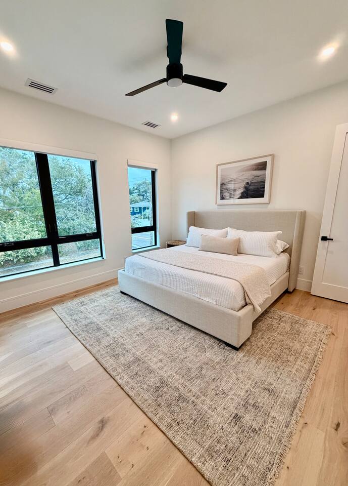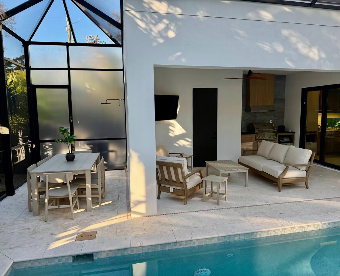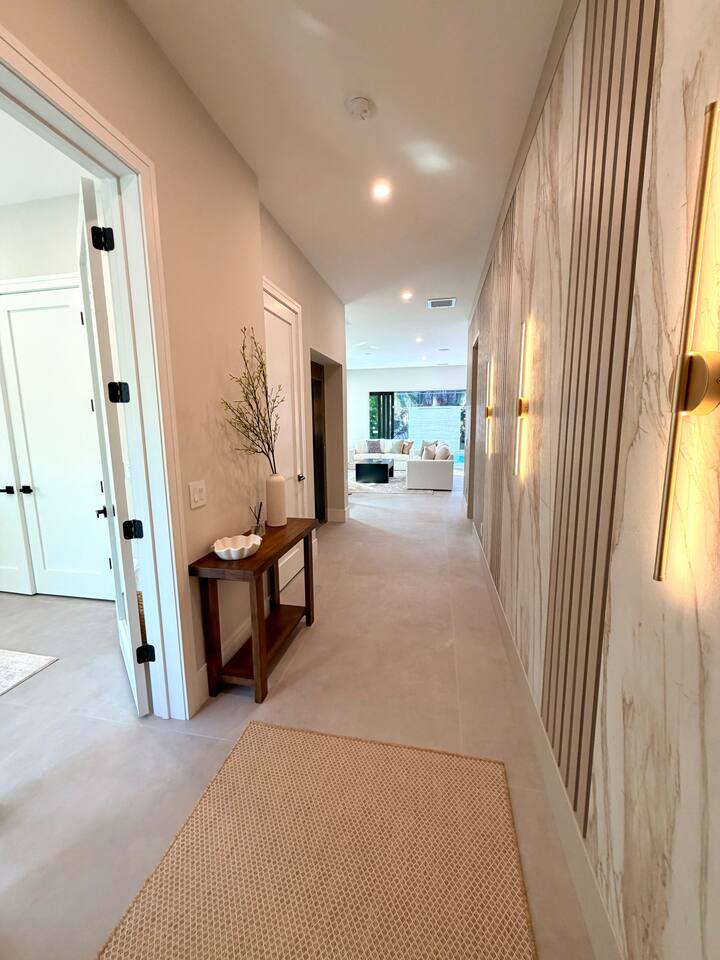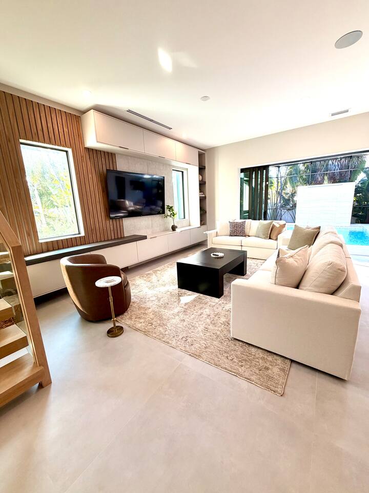 đ Main Features * 5 spacious bedrooms * 4 modern full bathrooms with luxury finishes + 2 Half Baths * Private heated & cooled pool with outdoor seating * High-end new construction with premium fixtures & finishes * Please note, the house is currently being furnished * All bedrooms include comfortable mattresses, hotel-quality linens and 4 w/smart TVs . Step outside to your **private tropical heated + cooled pool sanctuary**, surrounded by lush landscaping and comfortable lounging areasâideal for morning coffee, sunbathing, or unwinding after a day exploring Sarasotaâs beaches, restaurants, arts scene and nightlife. Inside, spacious open-concept living areas offer premium furnishings, a fully equipped chefâs kitchen, and large glass doors that create seamless indoorâoutdoor flow. The 5 Bedrooms (Primary suite with a King plus twin daybed and 3 King suites, all ensuites with elevator access. The 5th room has a Queen Murphy Bed) are designed for deep relaxation with plush bedding, spa-inspired bathrooms, and curated finishes (the bedrooms are currently being furnished, pictures to follow). Located minutes from **Siesta Keyâs powder-white sands** and **downtown Sarasotaâs award-winning dining, shopping, and arts**, this home offers the best of both worldsâbeach days and urban energy, all within a short drive, rideshare or golf cart ride (rentals available). Whether youâre here for a romantic getaway, family vacation, or group escape, this modern luxury retreat delivers the elevated experience todayâs travelers seek. Distance to Southside Village: 1 mile Distance to Downtown Sarasota: 2.5 miles Distance to Siesta Key Village: 3 miles Distance to St. Armand's Circle: 5 miles Distance to endless solitude and bliss: 0 miles
