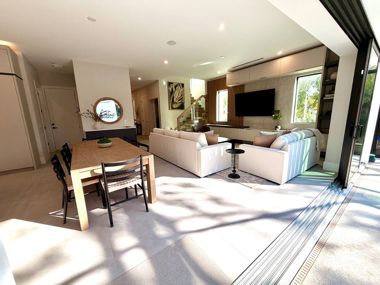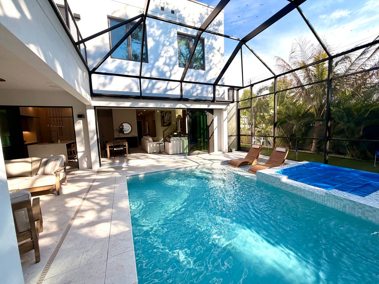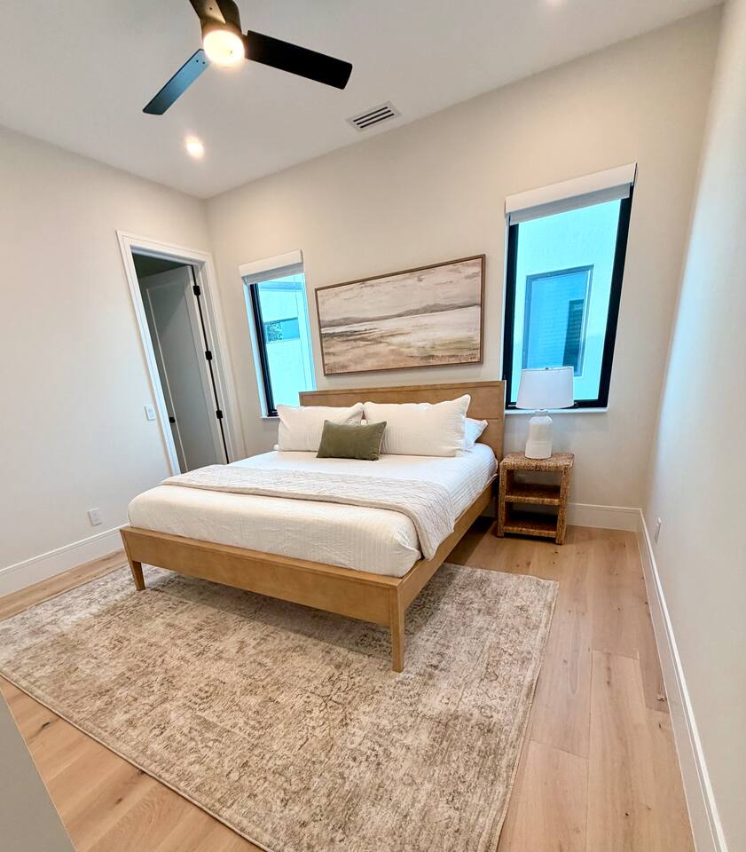 đ Main Features * 5 spacious bedrooms * 4 modern full bathrooms with luxury finishes + 2 Half Baths * Private heated & cooled pool with outdoor seating * High-end new construction with premium fixtures & finishes * Please note, the house is currently being furnished * All bedrooms include comfortable mattresses, hotel-quality linens and 4 w/smart TVs . Step outside to your **private tropical heated + cooled pool sanctuary**, surrounded by lush landscaping and comfortable lounging areasâideal for morning coffee, sunbathing, or unwinding after a day exploring Sarasotaâs beaches, restaurants, arts scene and nightlife. Inside, spacious open-concept living areas offer premium furnishings, a fully equipped chefâs kitchen, and large glass doors that create seamless indoorâoutdoor flow. The 5 Bedrooms (Primary suite with a King plus twin daybed and 3 King suites, all ensuites with elevator access. The 5th room has a Queen Murphy Bed) are designed for deep relaxation with plush bedding, spa-inspired bathrooms, and curated finishes (the bedrooms are currently being furnished, pictures to follow). Located minutes from **Siesta Keyâs powder-white sands** and **downtown Sarasotaâs award-winning dining, shopping, and arts**, this home offers the best of both worldsâbeach days and urban energy, all within a short drive, rideshare or golf cart ride (rentals available). Whether youâre here for a romantic getaway, family vacation, or group escape, this modern luxury retreat delivers the elevated experience todayâs travelers seek. Distance to Southside Village: 1 mile Distance to Downtown Sarasota: 2.5 miles Distance to Siesta Key Village: 3 miles Distance to St. Armand's Circle: 5 miles Distance to endless solitude and bliss: 0 miles