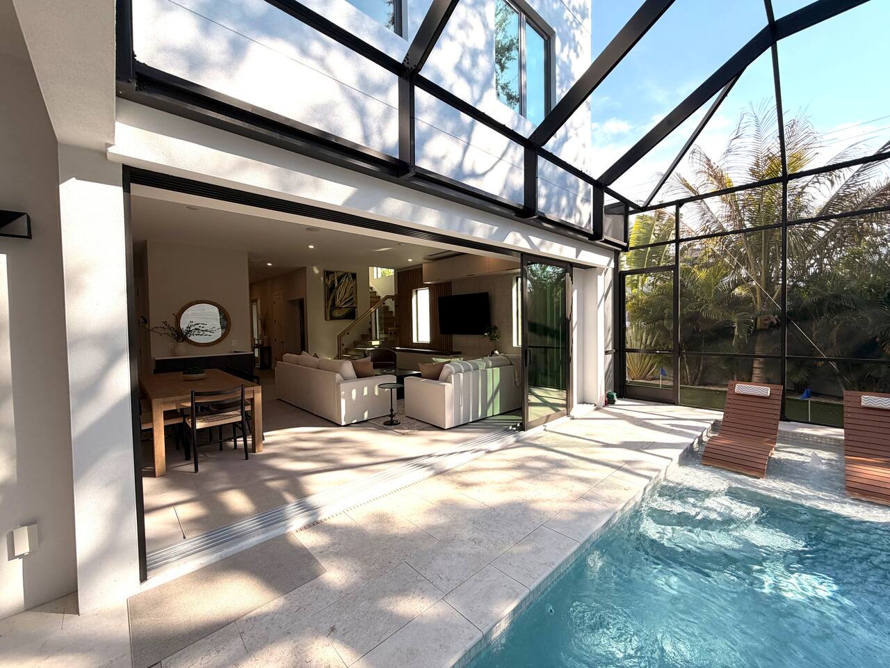 đ Welcome to Siesta Luxe â Your Private Modern Retreat Between Siesta Key & Downtown Sarasota This 5 bedroom 5 bath (4 full & 2 half) modern retreat *w/elevator* features stylish high end interiors, a private heated + cooled tropical pool, and seamless indoorâoutdoor living. Enjoy plush bedrooms, a chefâs kitchen, and private resort-style vibesâall just minutes from beaches, dining, arts, and the nightlife. Your Sarasota/Siesta Key getaway starts here.