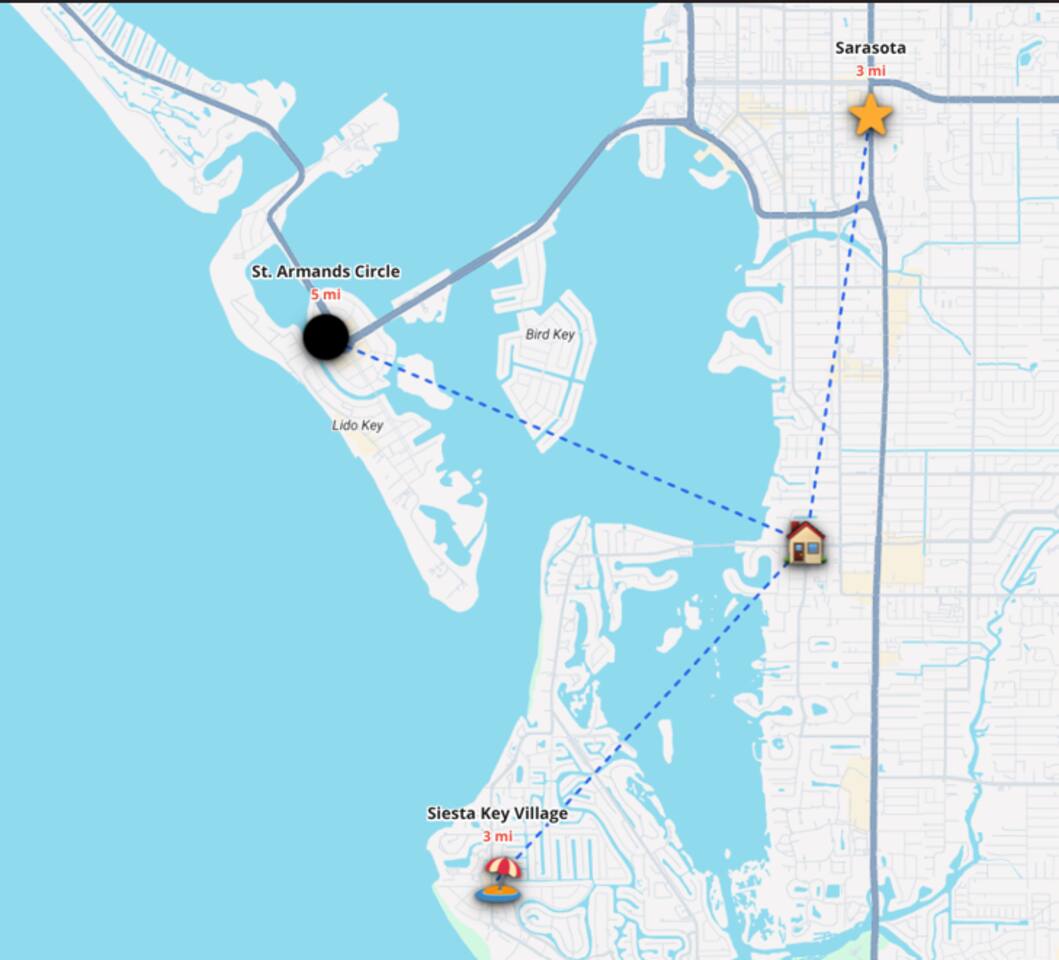 We are ideally located West of the Trail and right between downtown Sarasota and Siesta Key.